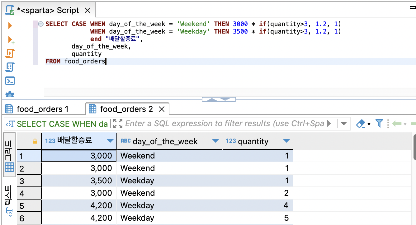 2) [실습] 주문 시기와 음식 수를 기반으로 배달할증료 구하기