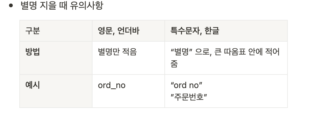 group by 뒤에 첫번째 컬럼과 두번째 컬럼별로 묶는거에 대해 1, 2 와 같이 숫자로만 나타낼 수도 있다