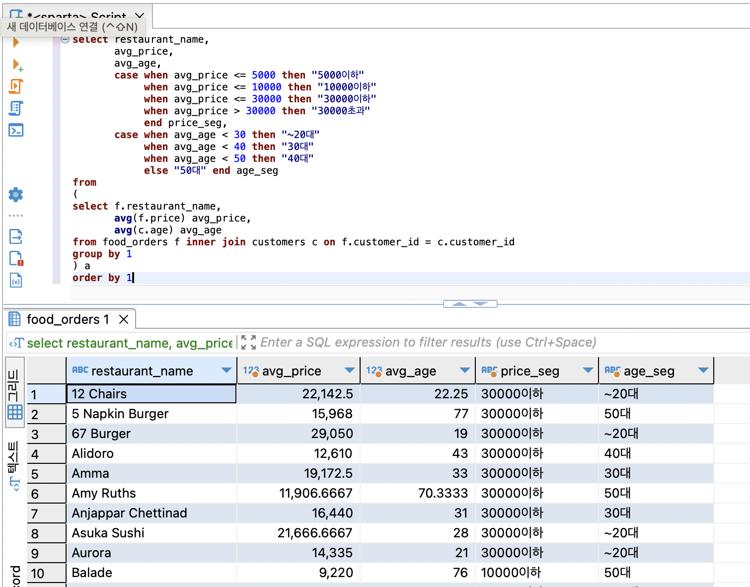 1) [실습] 음식점의 평균 단가별 segmentation을 진행하고, 그룹에 따라 수수료 연산하기